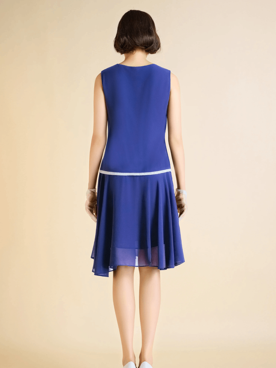 1920s Classic Sleeveless Casual Dress Sapphire Blue / White
