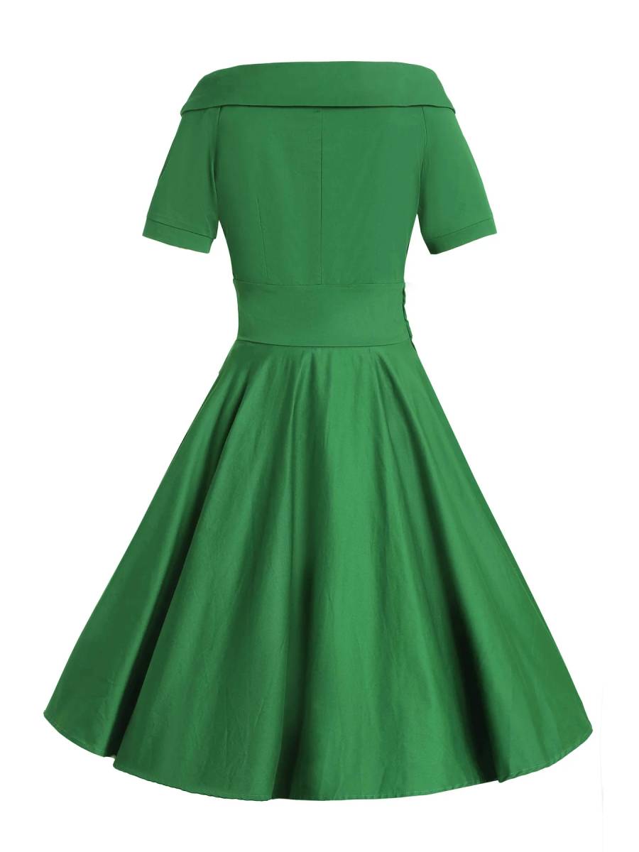 Grünes Petticoatkleid im 50er Jahre Stil mit U-Boot Ausschnitt und weit schwingendem Rock