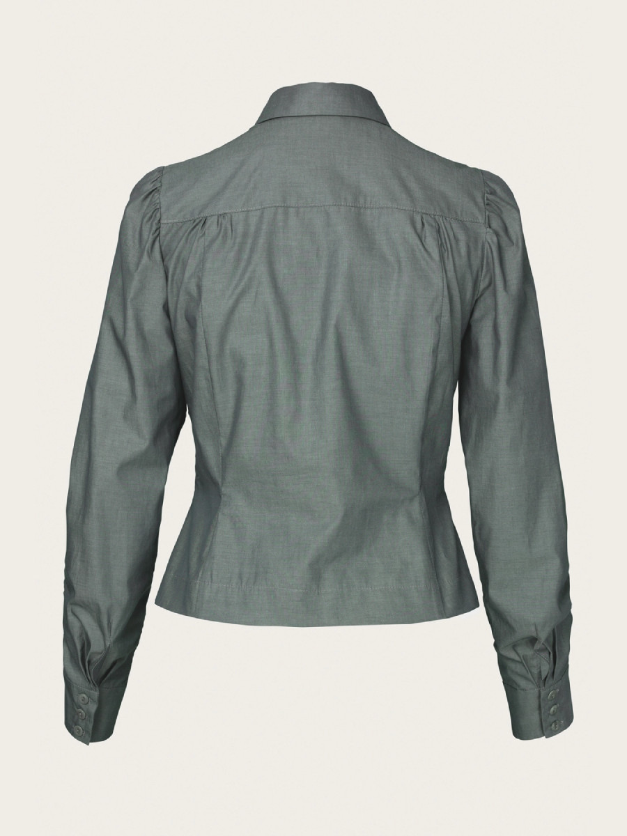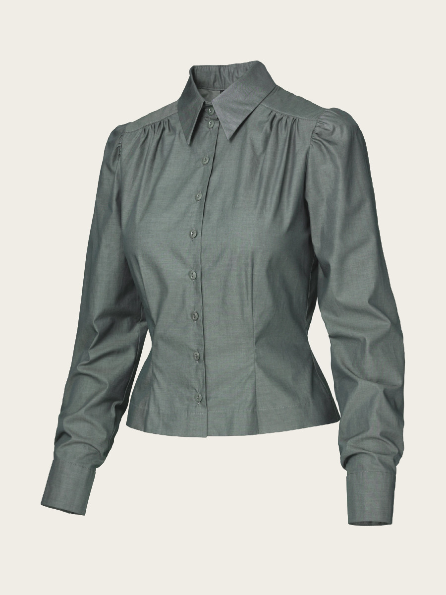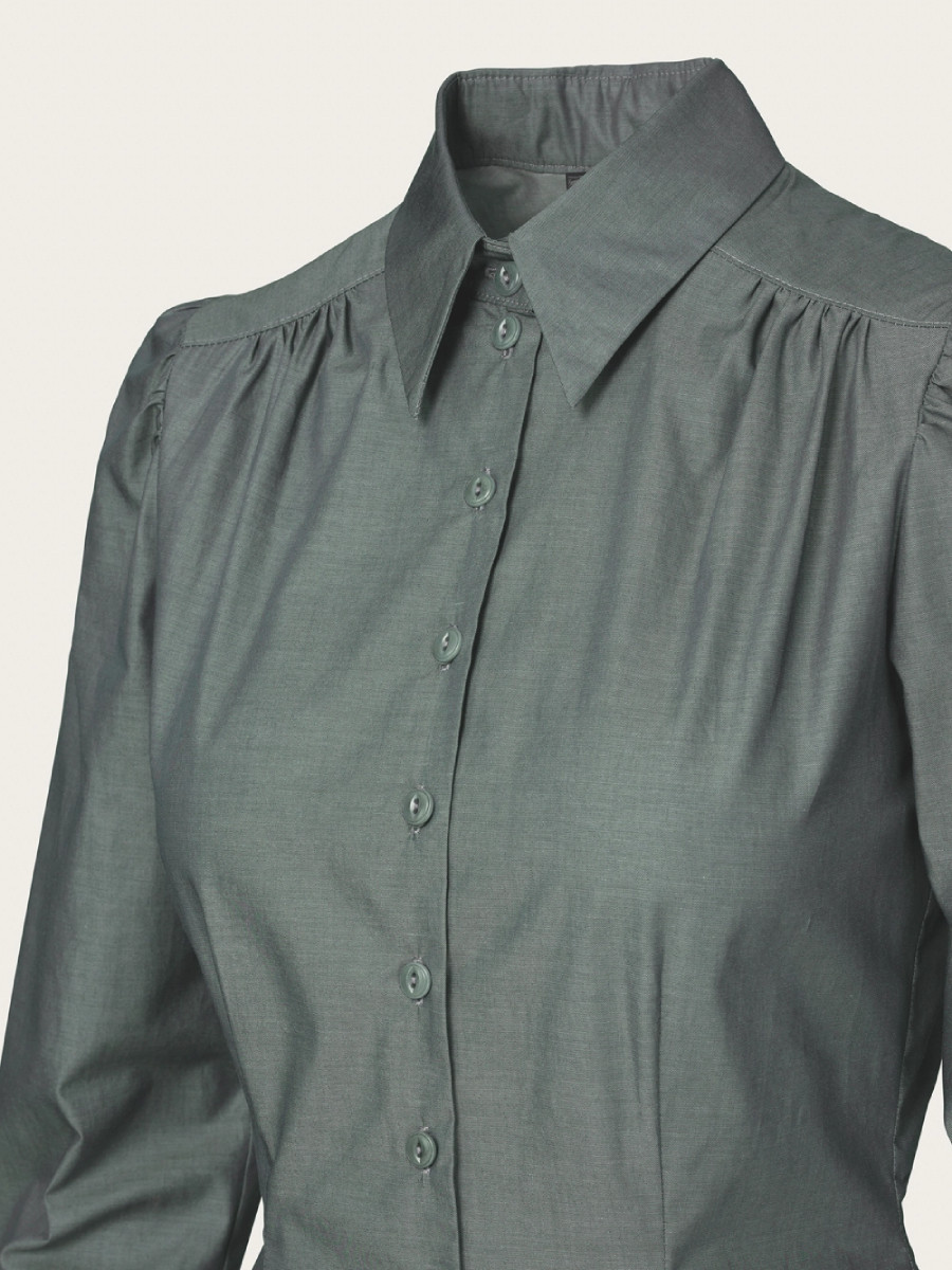 Hemdbluse für Damen im Vintage-Stil aus mattgrüner Baumwolle