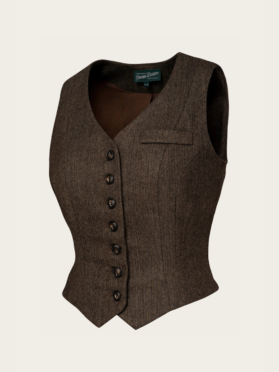 - Damen-Anzugweste im Vintage-Stil aus braunem Wollgemisch