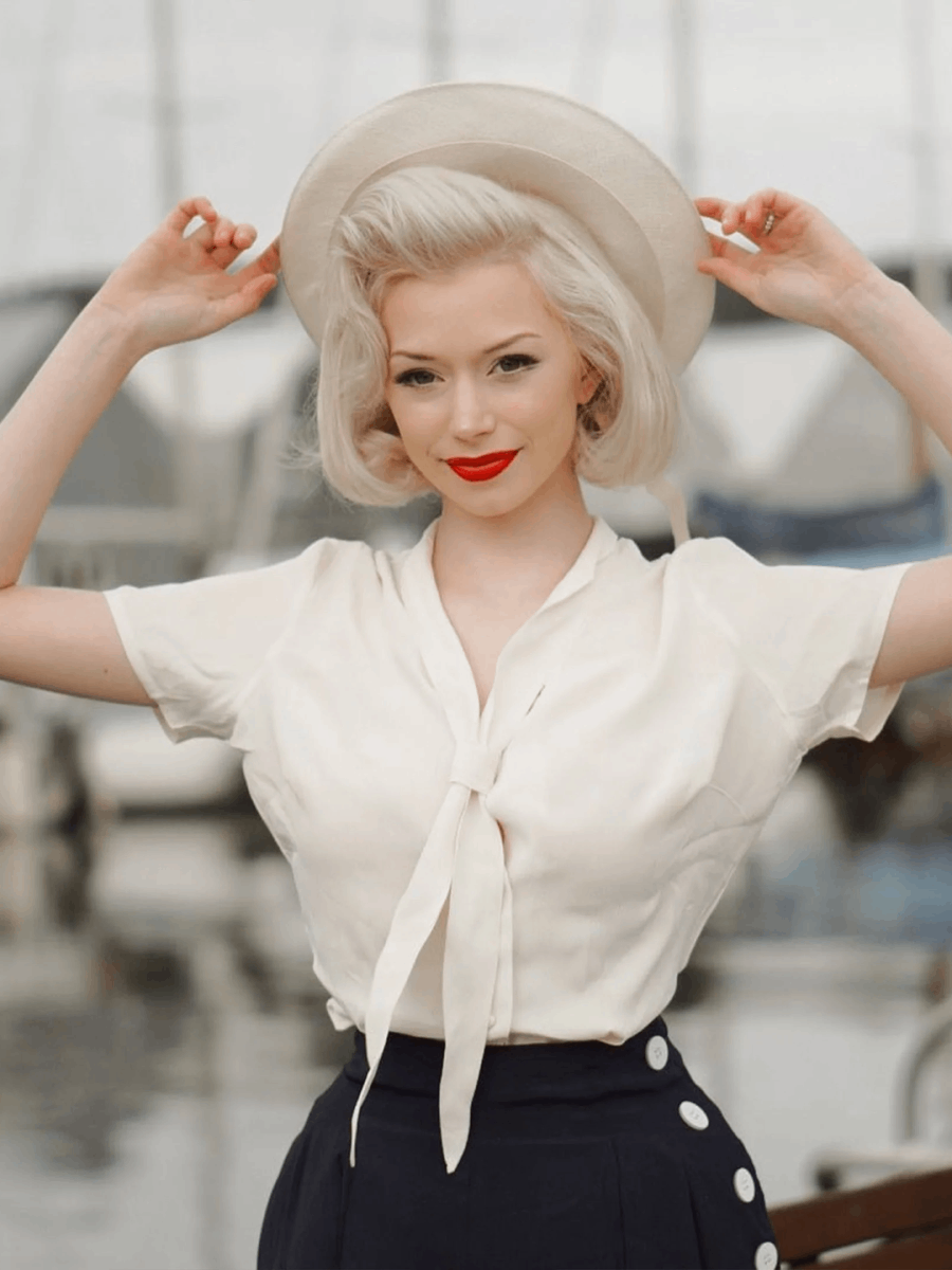 Entdecken Sie unsere luftig-leichten Damenblusen im Vintage-Stil und machen Sie Ihren 40er Jahre Look mit einer Retro-Shorts oder einer Marlenehose perfekt. Mehr individuelle Styles finden Sie in unserem Onlineshop für Retro-Mode.