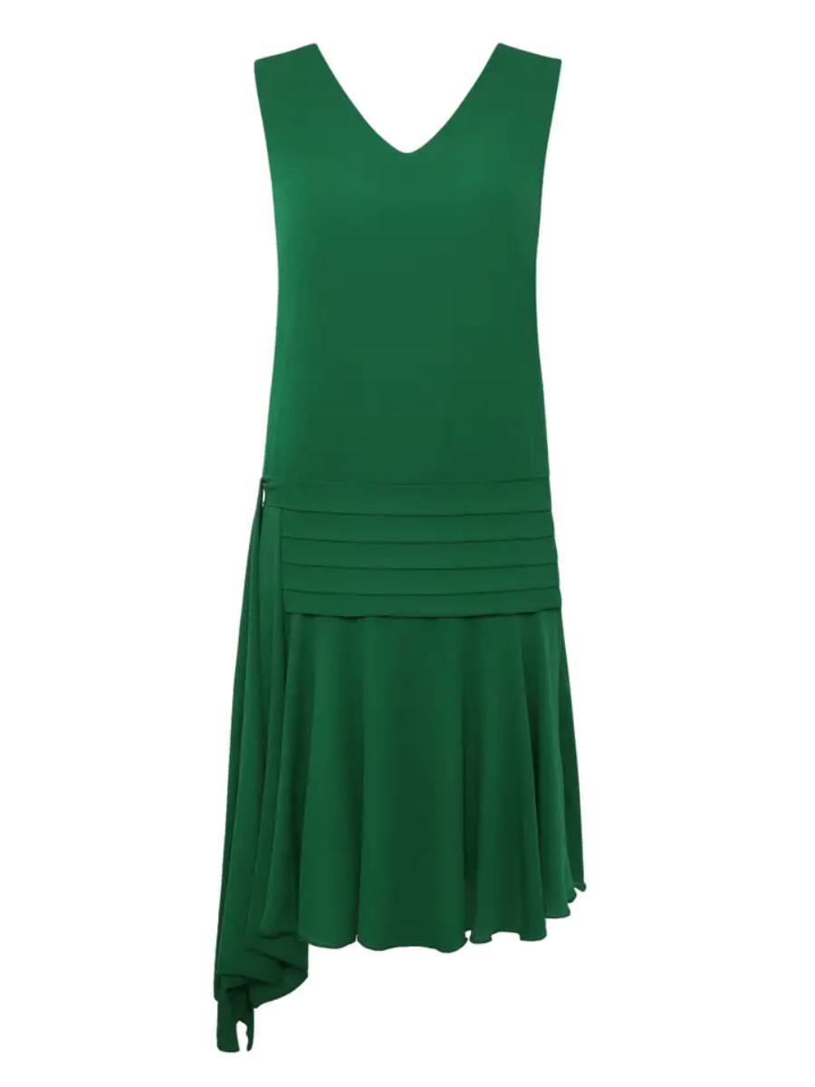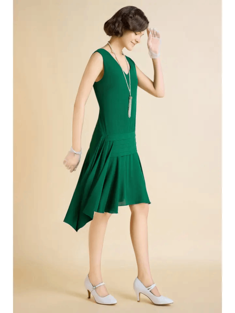 20er Jahre Kleid Irregular Ribbon Pleated Day Dress grün
