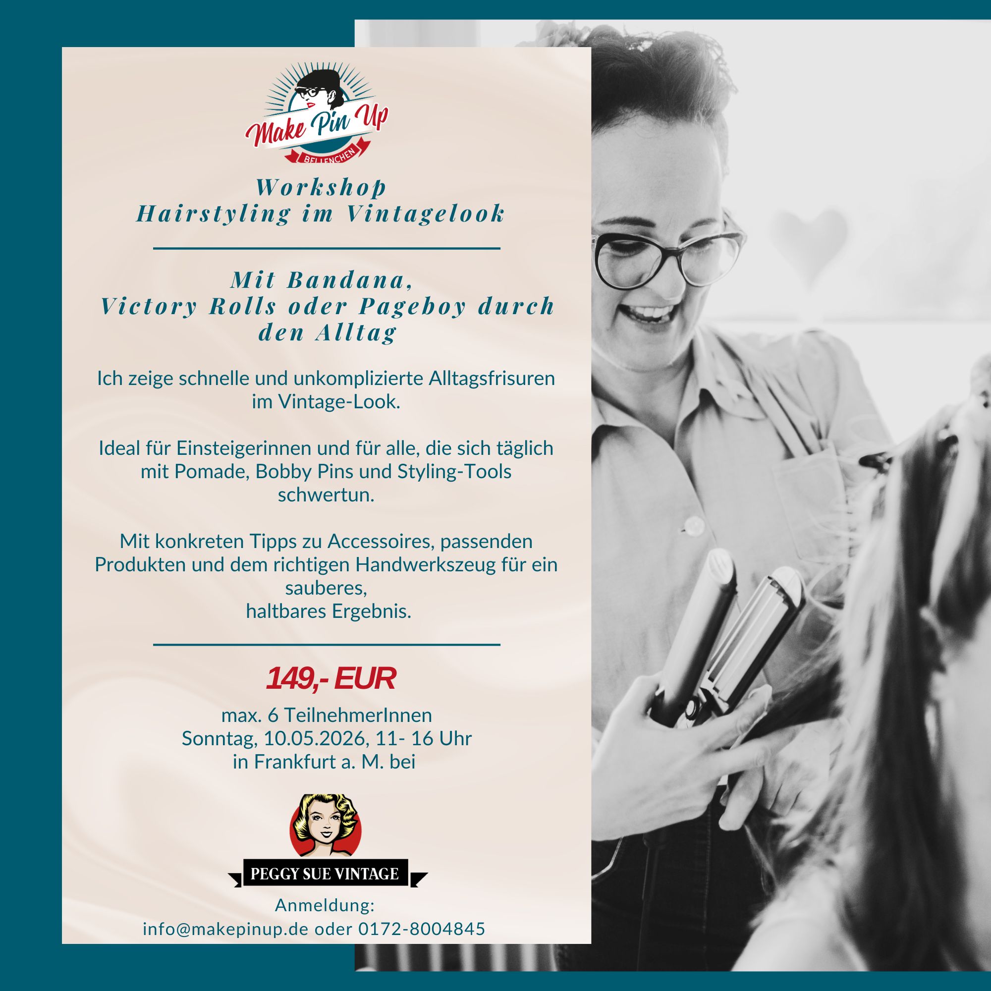 Du erhältst persönliche Anleitung in kleiner Gruppe, leicht umsetzbare Techniken für den Alltag und konkrete Produktempfehlungen, die dir deinen Vintage-Look dauerhaft erleichtern. Für Getränke und Snacks ist selbstverständlich gesorgt.