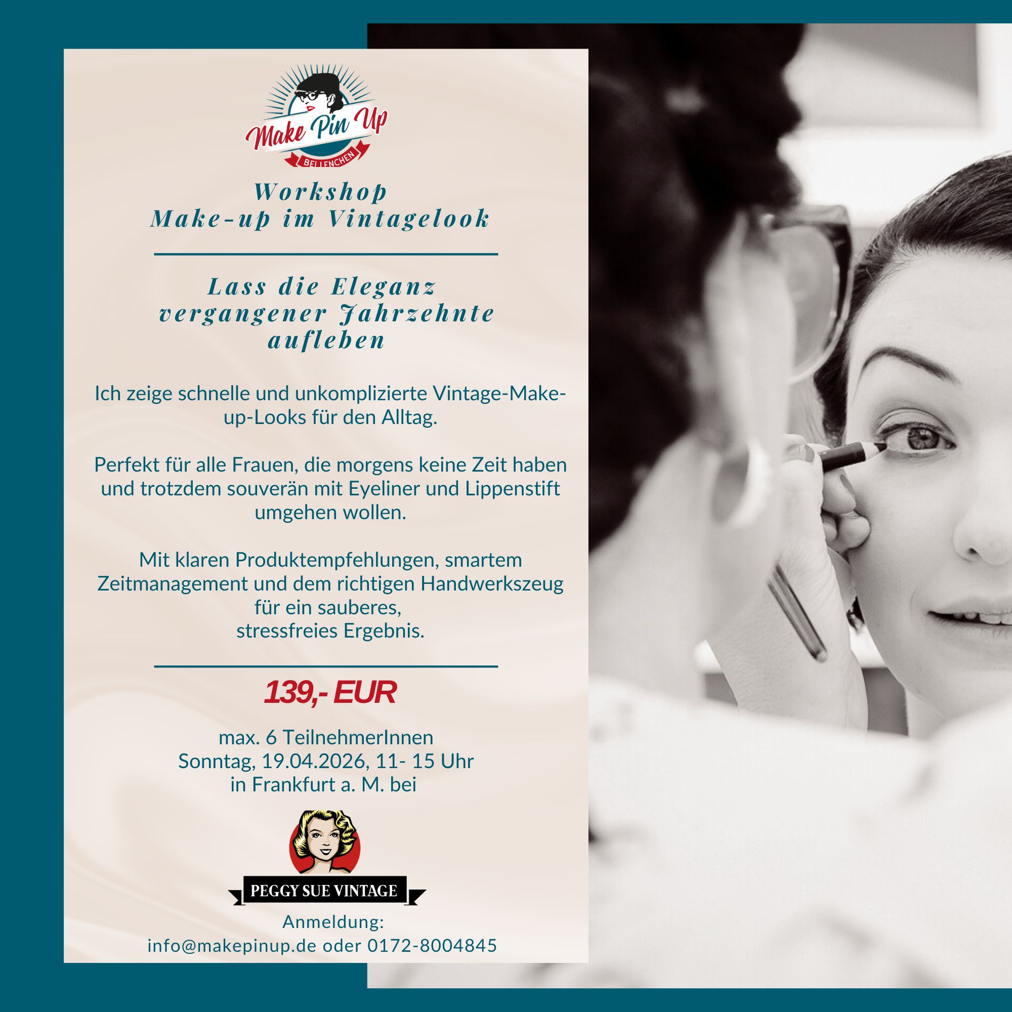 Lerne Vintage-Make-up Schritt für Schritt – in entspannter, kleiner Runde im gemütlichen Ambiente von Peggy Sue Vintage.