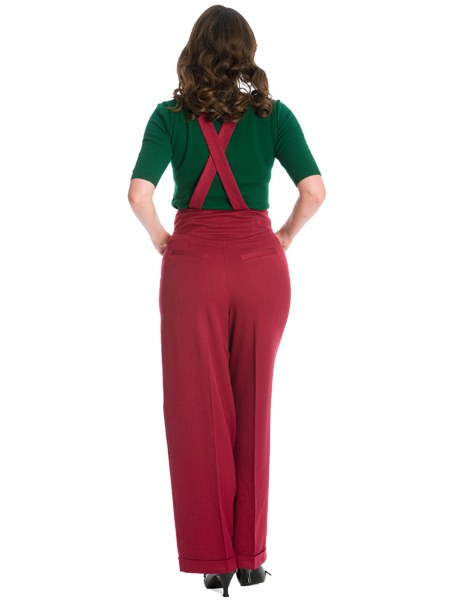 Weinrote Marlenehose im Vintage-Stil mit abnehmbaren Hosenträgern