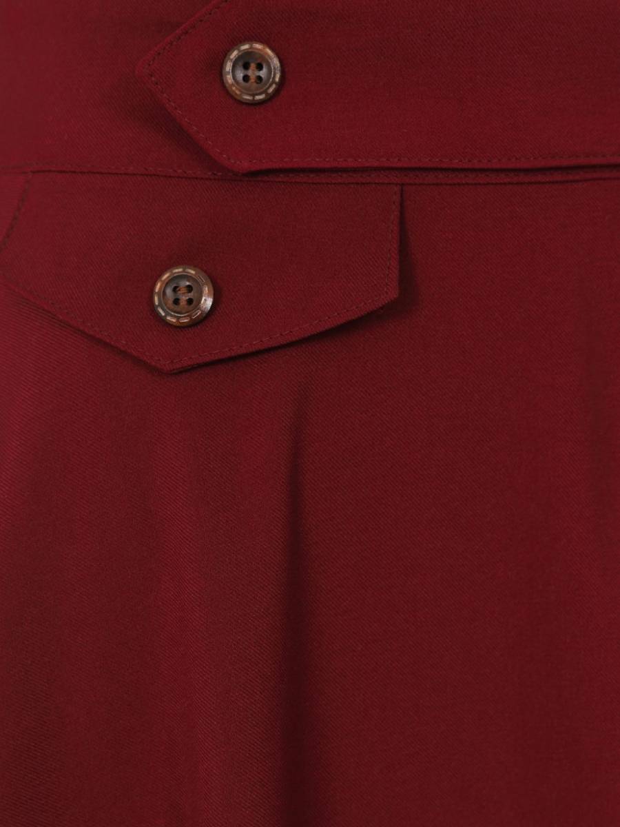 Sind Sie ein Bücherwurm? Der weinrote Swingrock im 40er Jahre Stil "Book Club Swing Skirt Burgundy" von Banned hat seinen Namen von den College-Looks der vierziger Jahre, als die "Bobby Soxers" über den Campus flanierten. Der Rock in A-Linie hat viele zeitgenössische Details wie den Querriegel mit Zierknopf in der Taille und die beiden Fake-Taschenklappen vorn, die jeweils mit großen braunen Knöpfen im Vintage-Stil verziert sind. Keine Sorge, die echten Taschen verstecken sich ganz diskret in der Seitennaht! Durch das 5 cm breite Taillenband sitzt der High Waist Rock perfekt in der Taille, hinten wird er mit einem Reißverschluss geschlossen. Die leicht ausgestellte A-Linien Form macht den Swing-Rock im Vintage-Stil zu einem perfekten Kleidungsstück für den Alltag, macht aber auch abends auf der Tanzfläche mit einer Vintage-Bluse eine gute Figur. Schlagen Sie mit dem Book Club Swing Skirt ein neues Kapitel in Ihrem Kleiderschrank auf!