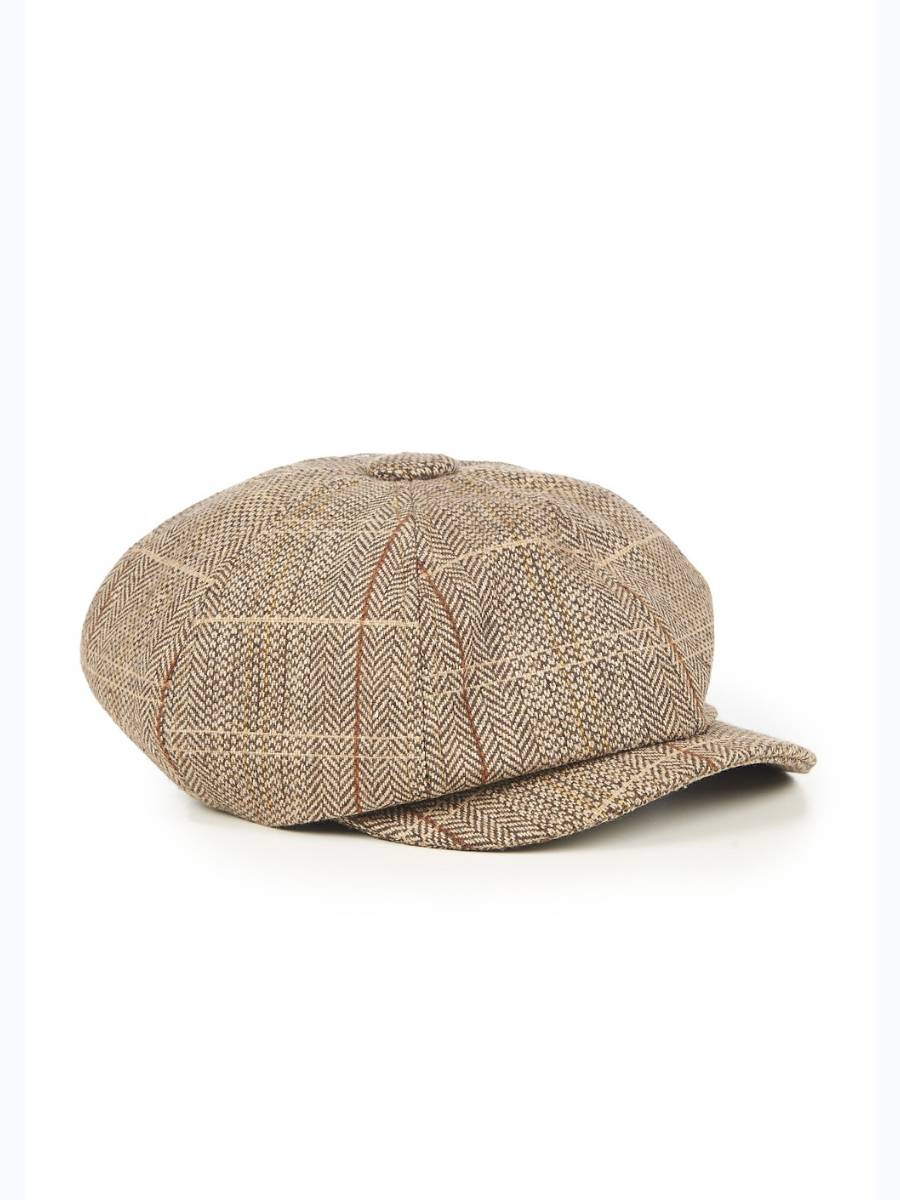 Hellbraune Schiebermütze für Damen in Tweedoptik im Peaky Blinders Stil
