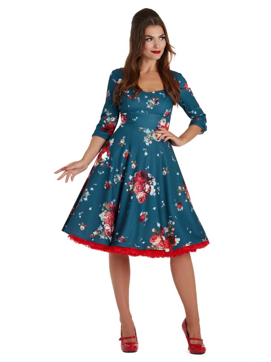Dolly & Dotty Kleid Scarlette Blue Rose Print