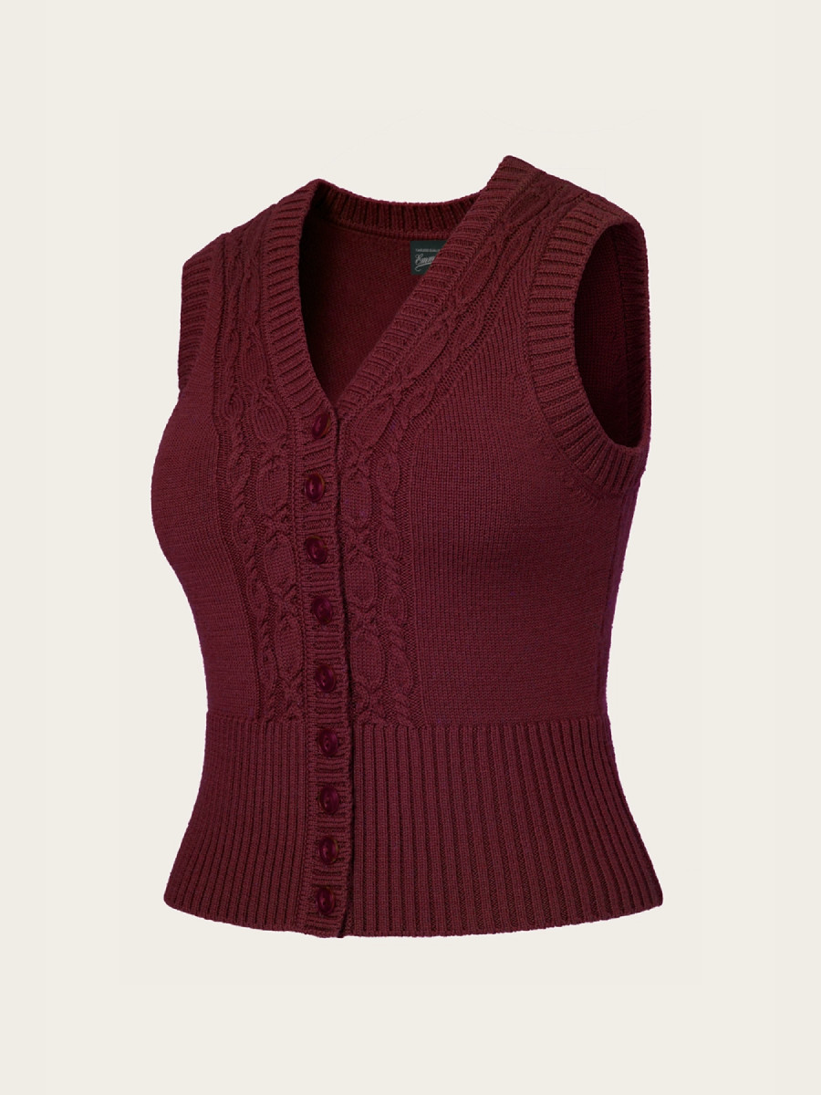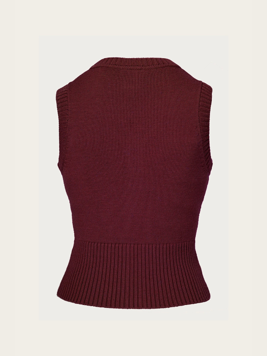 Weinrote Strickweste für Damen im Vintage Stil aus weicher Merinowolle mit Knöpfen vorn