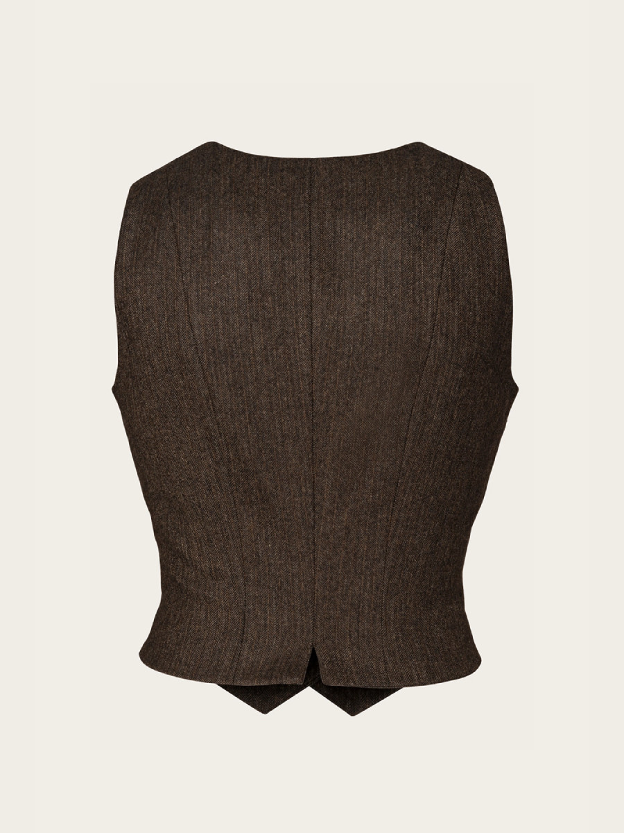 - Damen-Anzugweste im Vintage-Stil aus braunem Wollgemisch