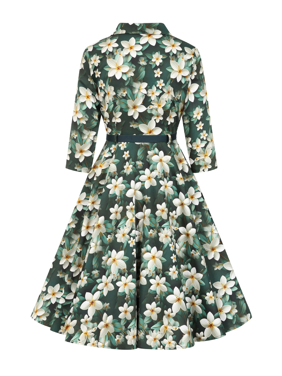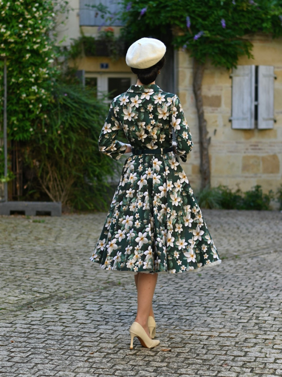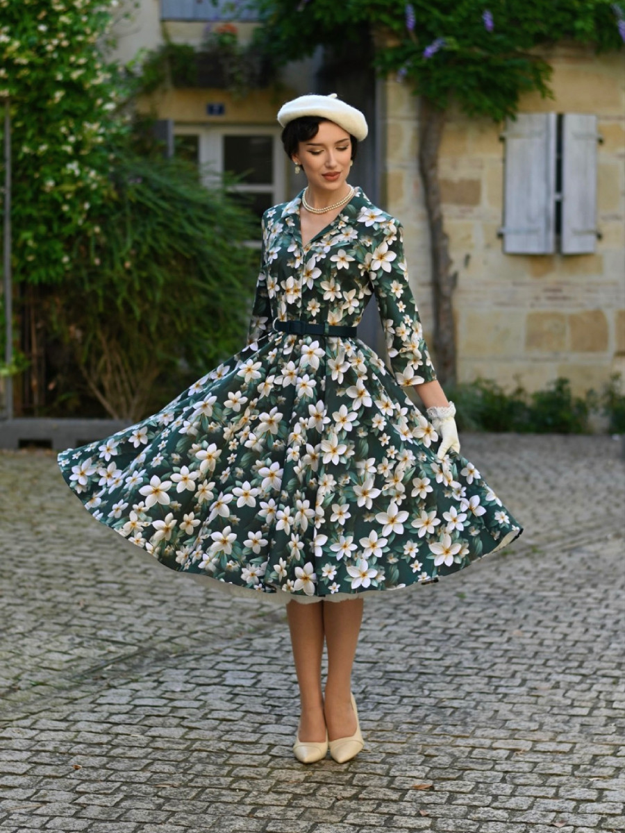 Grünes Petticoatkleid im 50er Jahre Stil mit weißem Blumenprint