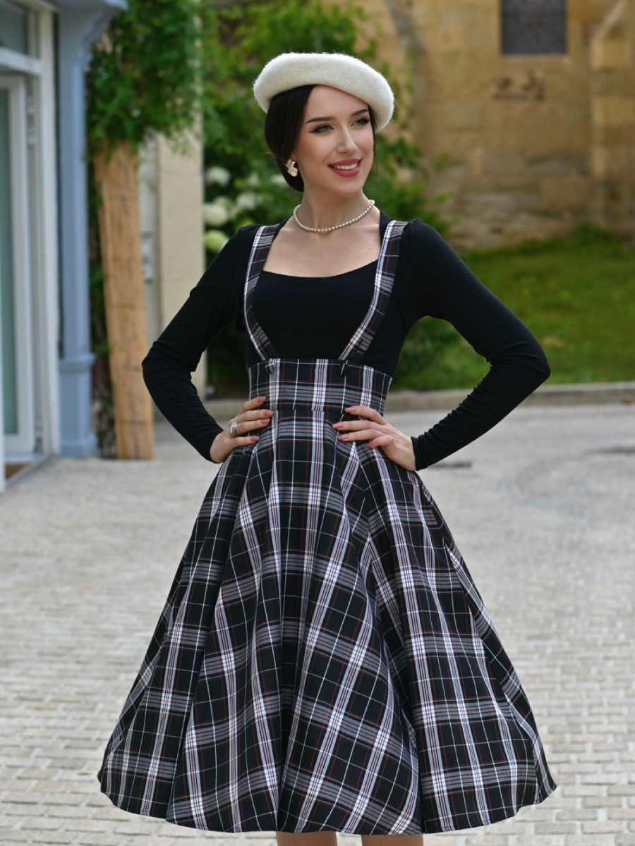 Schwarz-weiß karierter Trägerrock im 50er Jahre Vintage-Stil