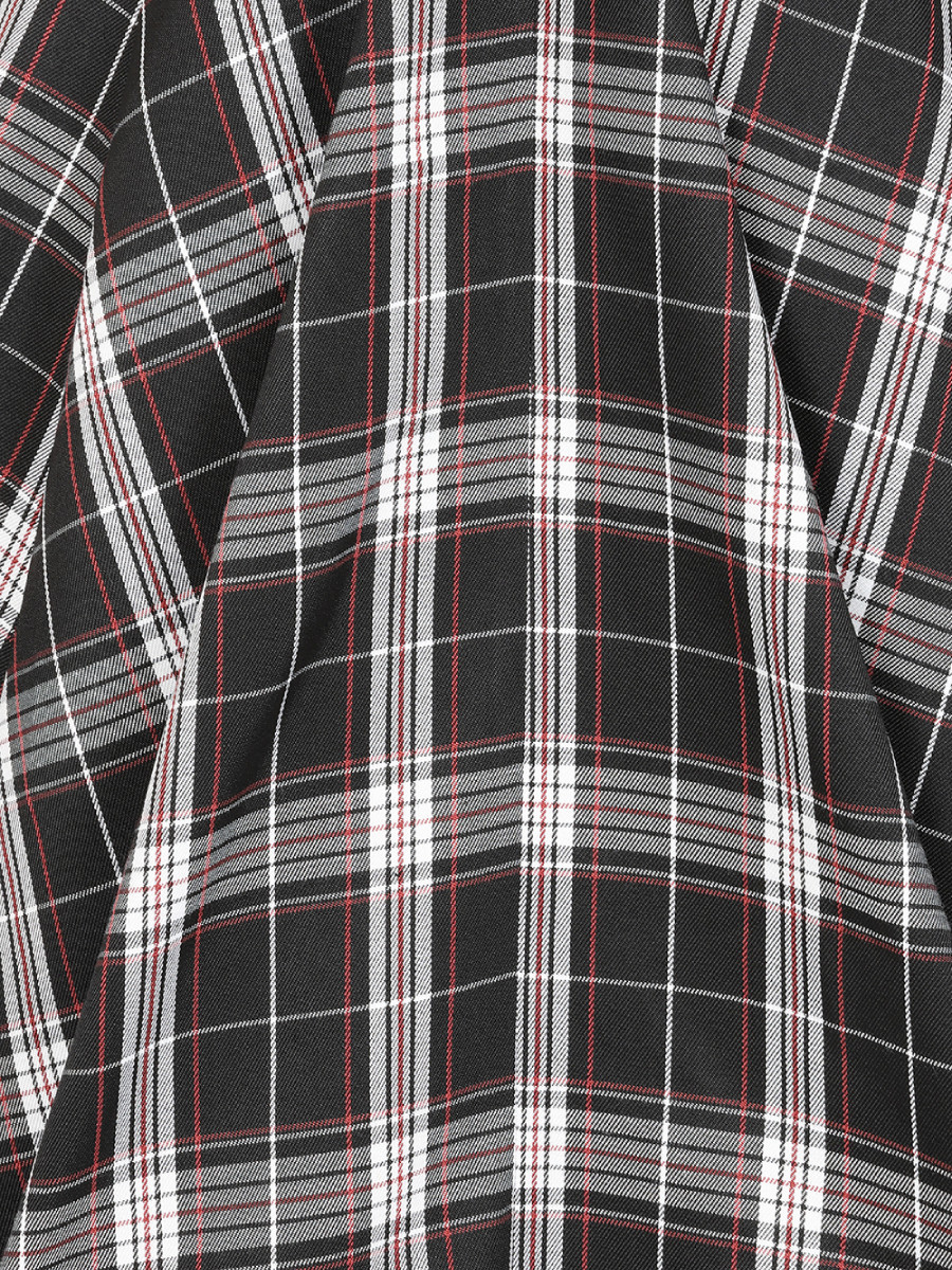 - Schwarz-weiß kariertes Tartan-Muster mit zarten roten Streifen
