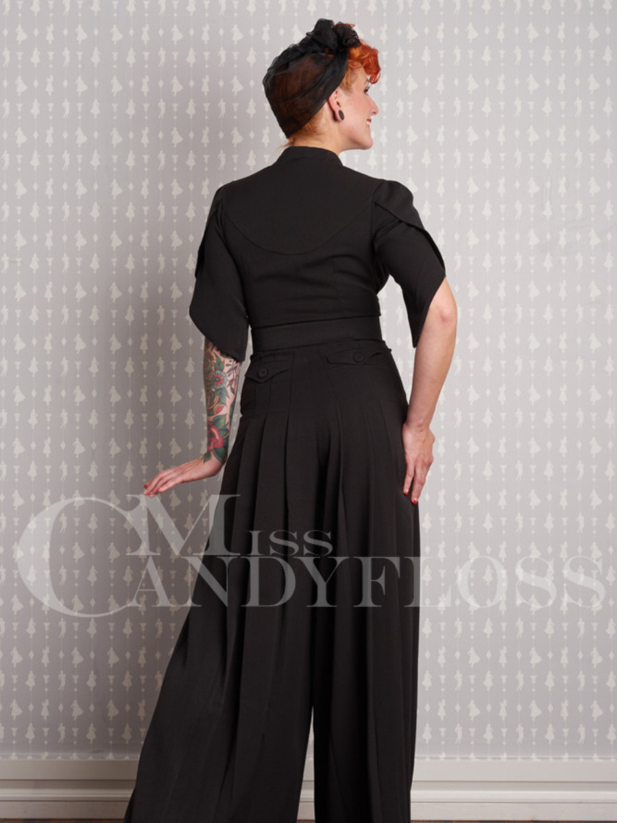 Schwarzer Jumpsuit im 40er Jahre Vintage Stil mit halblangen Ärmeln