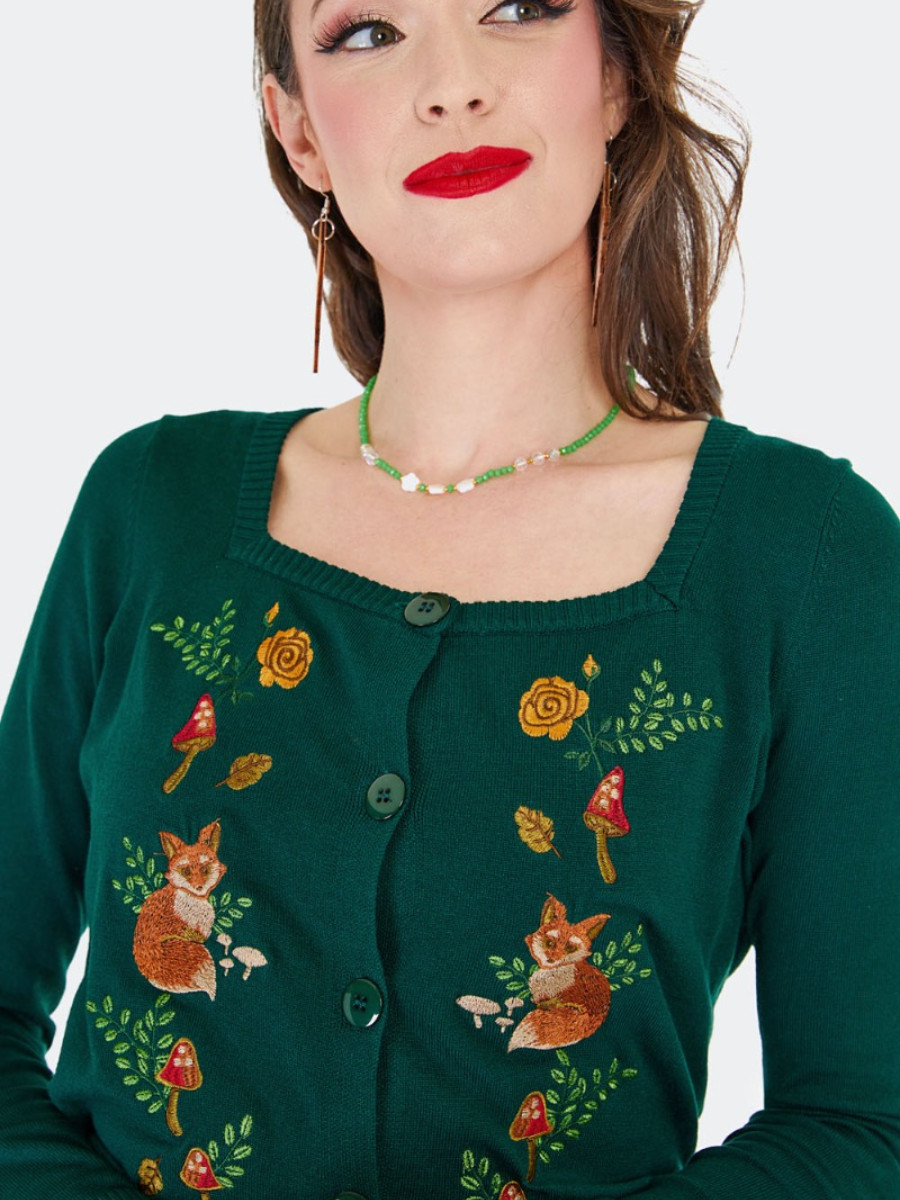 Voodoo Vixen Fox and Mushroom Cardigan dunkelgrün
