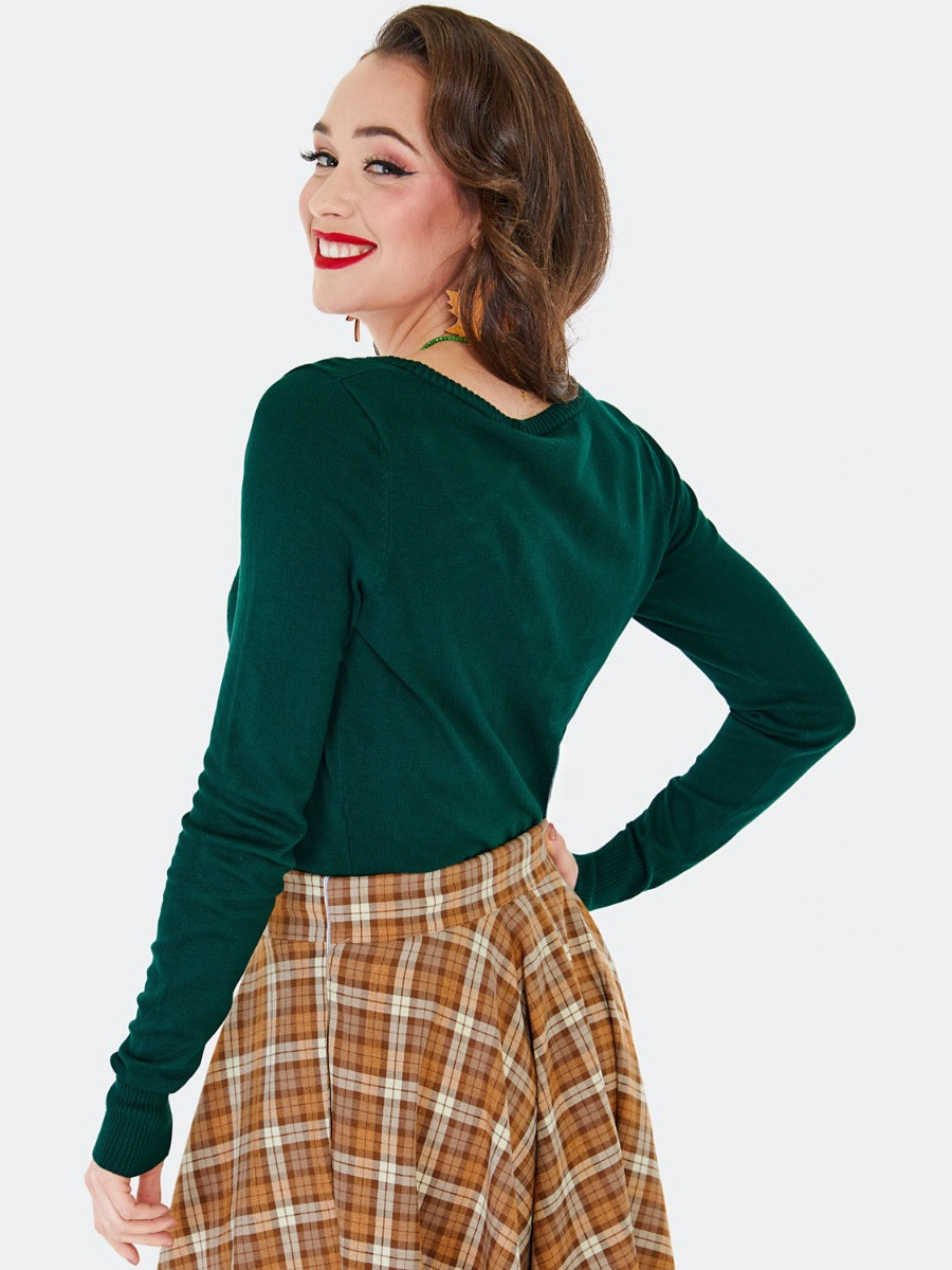 - Dunkelgrüner Damen-Cardigan im 40er Jahre Vintage-Stil